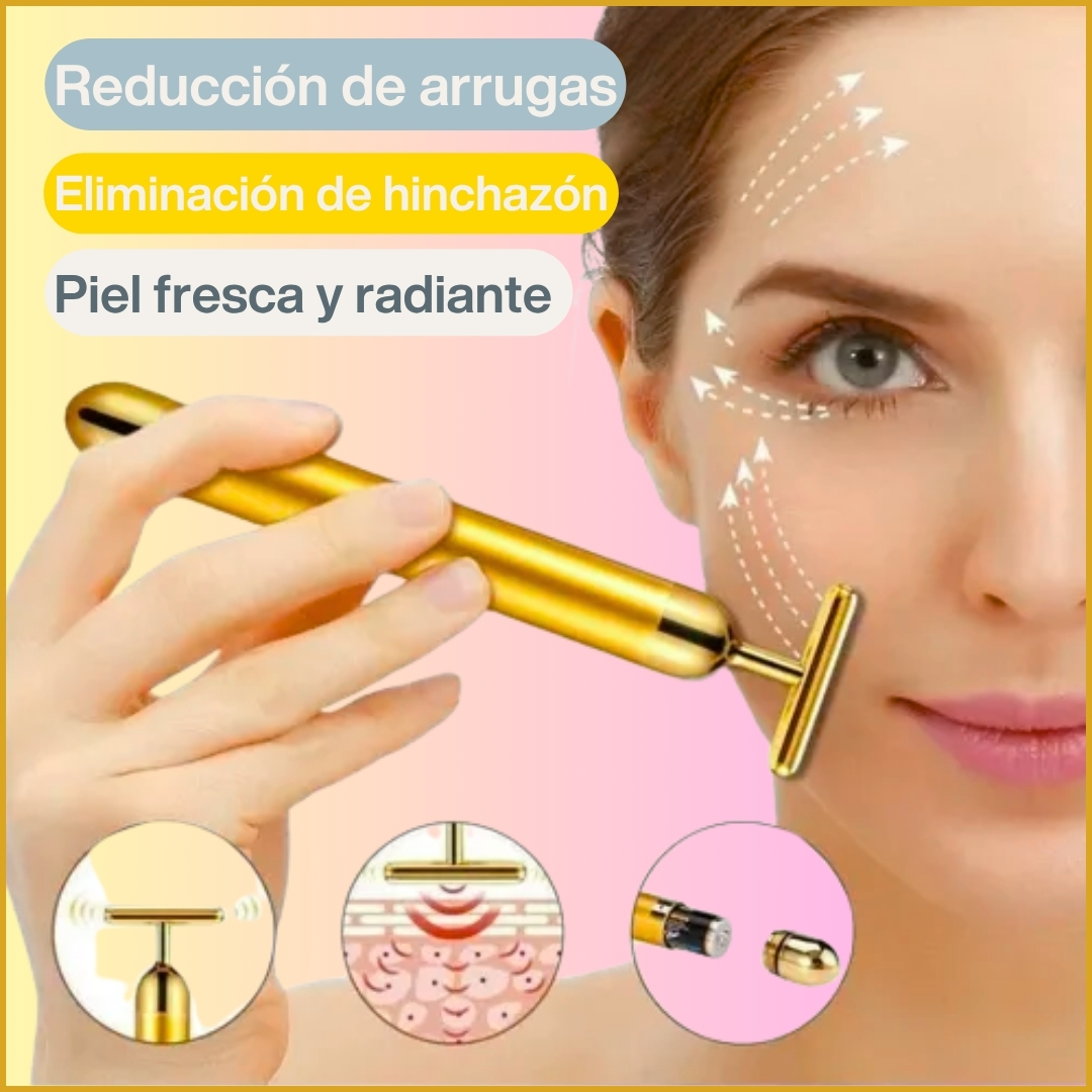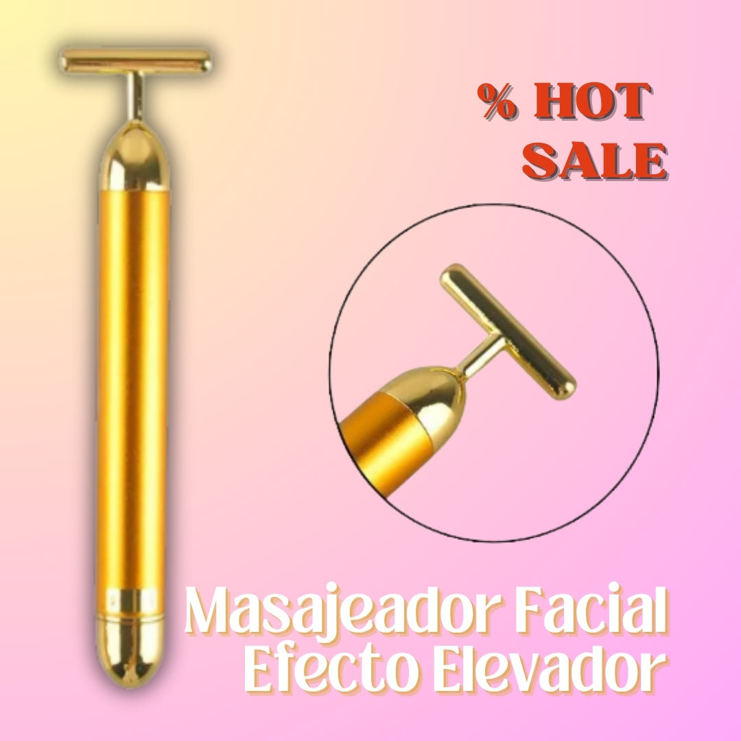 Transforma tu cuidado facial con el Masajeador Facial Dorado con Efecto Elevador, porque tu piel merece lo mejor. 💫